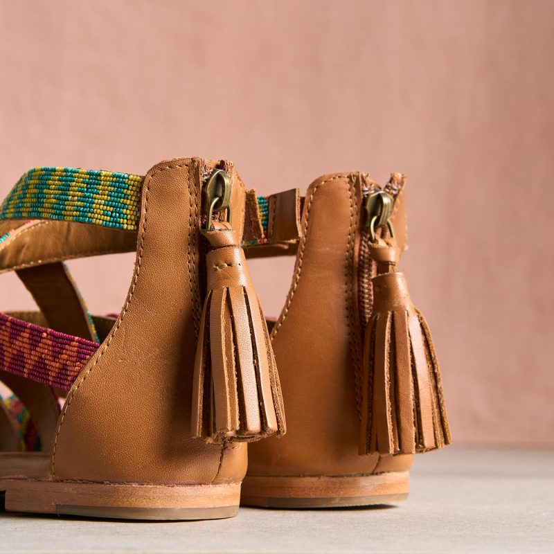 Five different intricately beaded designs form the straps of these brilliantly colored sandals. Back zipper with tassel. leather lining and insole. Leather. Imported. Whole sizes 36?C42. 36 (US 5). 37 (US 6). 38 (US 7). 39 (US 8). 40 (US 9). 41 (US 10). 42 (US 11).
