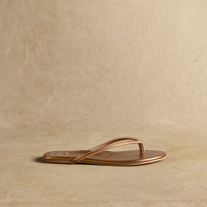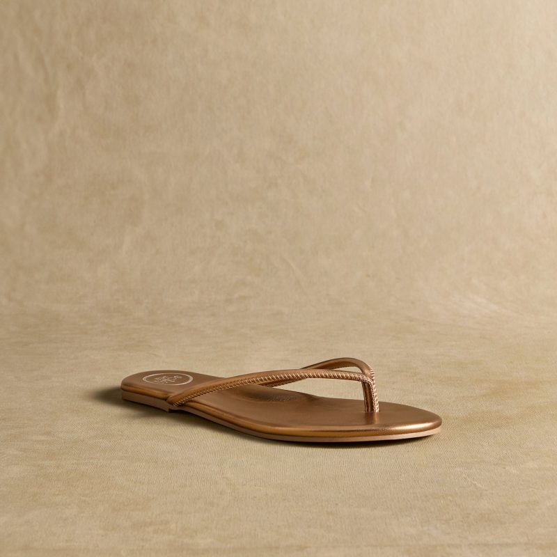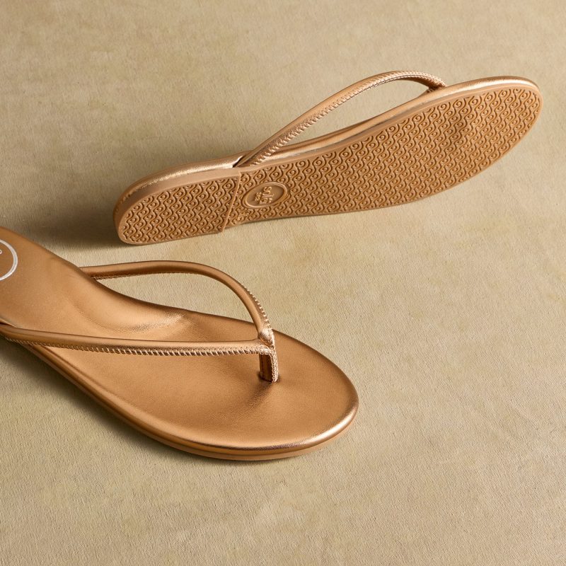 Bring your new favorite flip-flops to the beach and beyond. Handcrafted in Brazil for a simple yet feminine design??you’ll want a pair in every color. Faux leather. Whole sizes 6?C11.