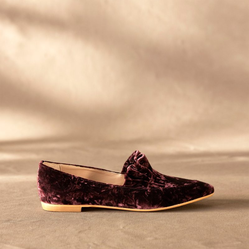 The rich. velvety texture and gathered. top ruffle detail offers easy. graceful style to these versatile flats. Viscose/cupro/leather. Italy. Exclusive. Euro whole sizes 36?C41. 36 (US 5.5). 37 (US 6). 38 (US 7). 39 (US 8). 40 (US 8.5). 41 (US 9.5).