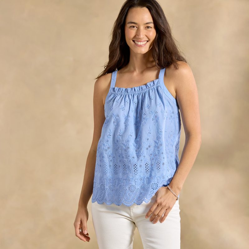 All-over eyelet makes Elsinore flirty and feminine in any weather—she’s equally pretty peeking out from under a denim jacket or all on her own! Elastic neckline with ruffle detail; scalloped hem. Hand wash. Imported. Exclusive. Sizes XS (0–2). S (4–6). M (8–10). L (12–14). XL (16–18). XXL (20–22). Approx. 24l