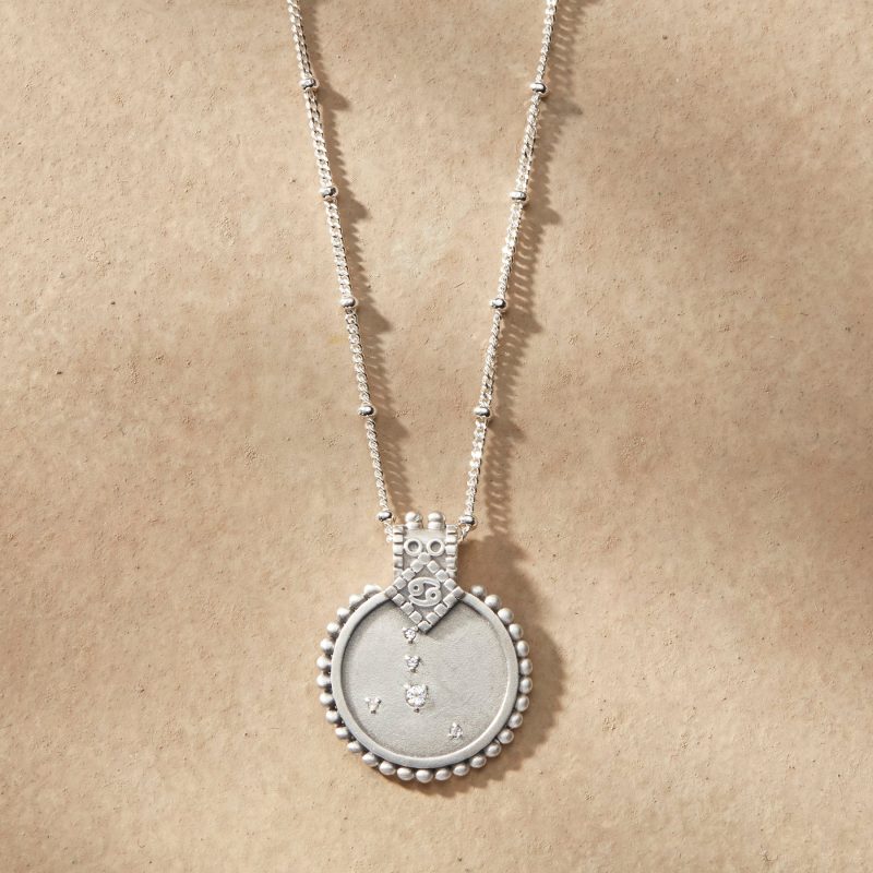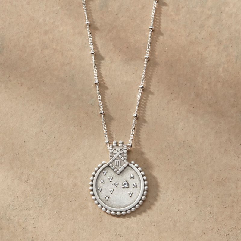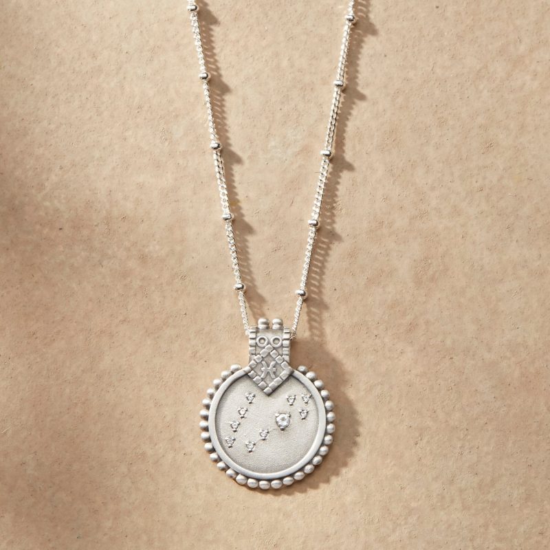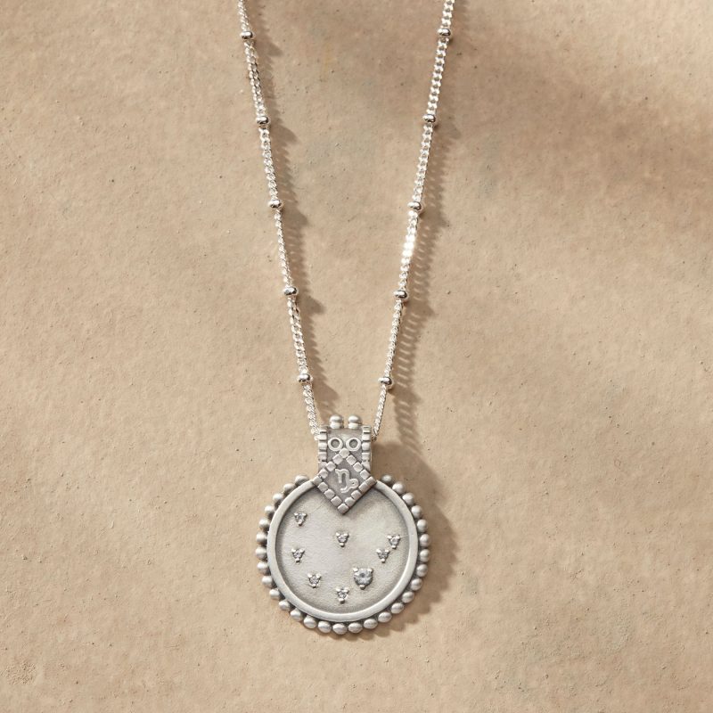 Constellations in sparkling white topaz remind us that we are governed by the stars. Handcrafted in sterling silver. Spring ring clasp. Exclusive. Specify zodiac sign. 18l. 7/8 drop.