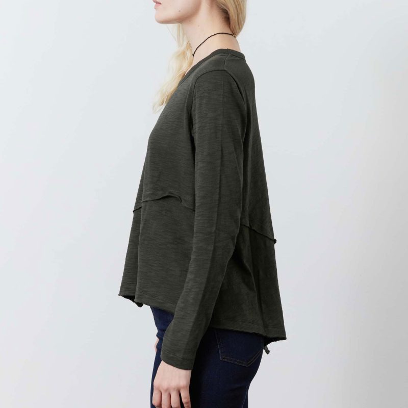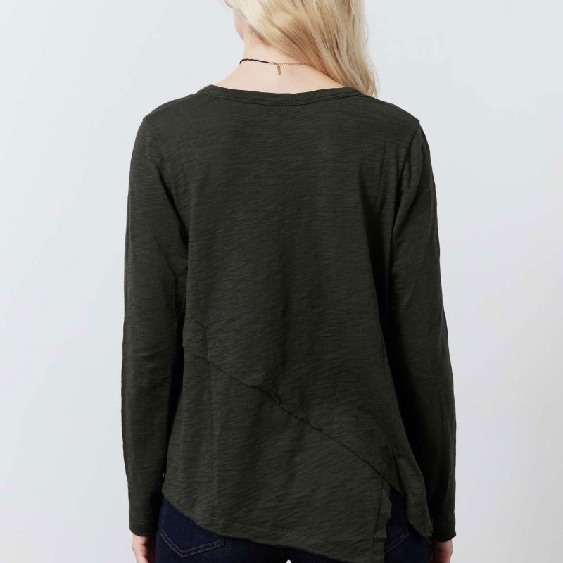 Asymmetric silhouettes are trending for the new season. Make this casual yet stand out piece your new basic with flare. closet staple.