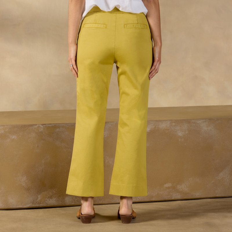 Even if you’re not beachcombing on the golden shores of their So Cal namesake. that’s the vibe you’ll feel in our Laguna Pants. This classic kick-flare hits above the ankle and features a leg-lengthening front seam. Cotton/lycra. Machine wash. Olive Oil or Black. Imported. Exclusive. Sizes 2?C16. 26 inseam.