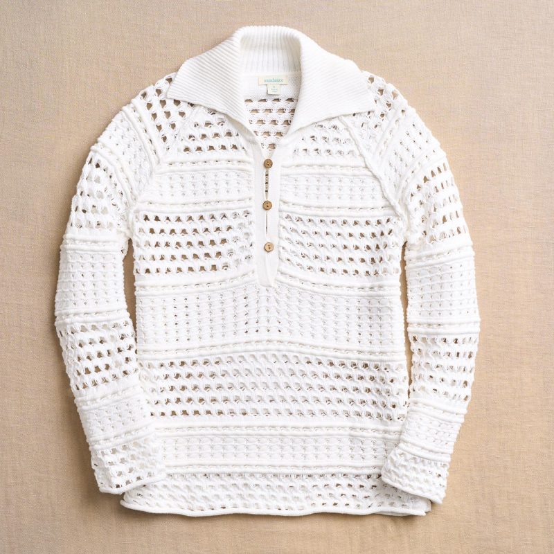 Live like every day is a beach day with our easy. pullover sweater light. airy and full of stunning pointelle and mixed rib texture. Jersey roll finish. side slits. Cotton. Hand wash. Imported. Exclusive. Sizes XXS (00). XS (0-2). S (4-6). M (8-10). L (12-14). XL (16-18). Approx. 23l.
