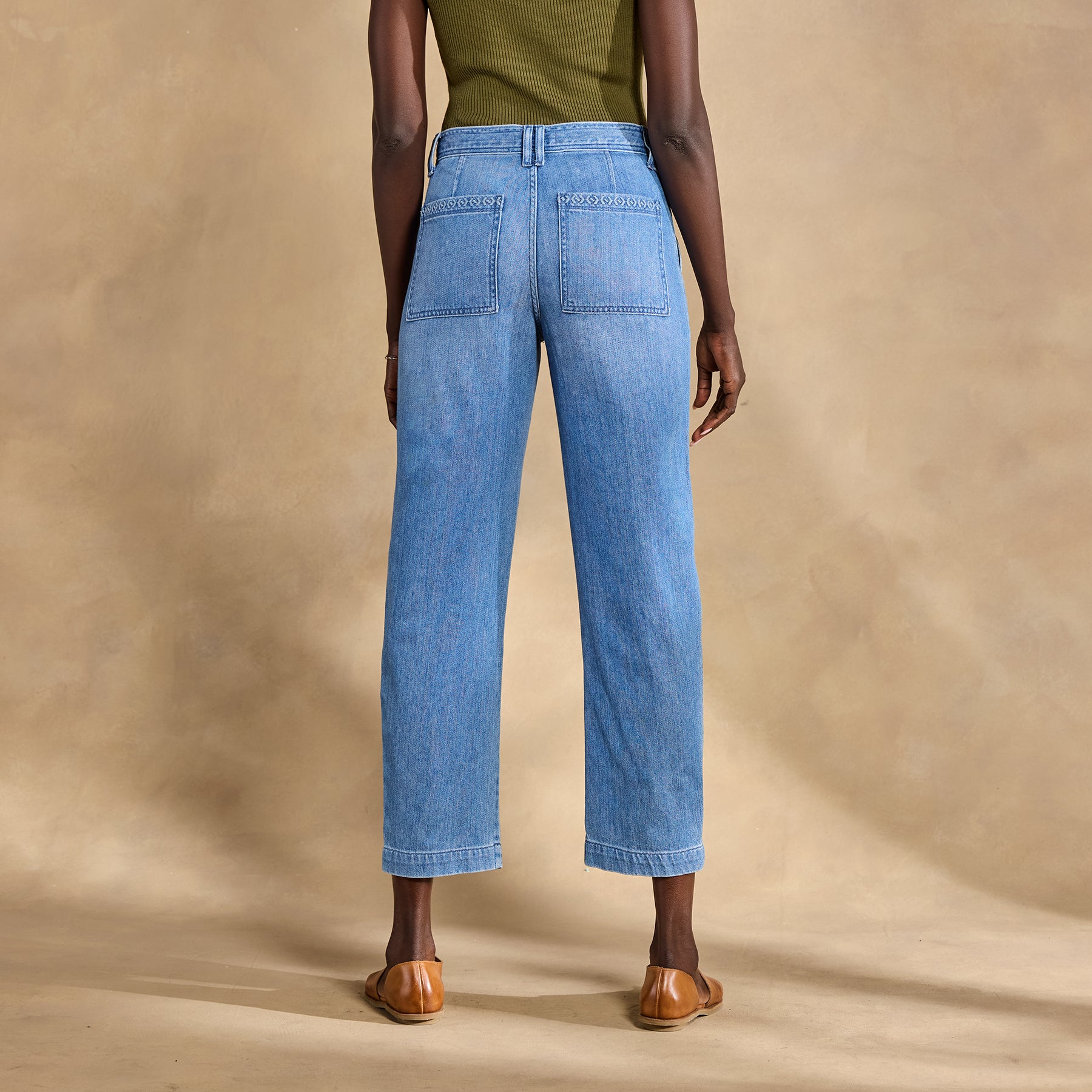 A beautiful balance of work and play. our Rhodes Denim Pants feature a classic. ultra-flattering utility shape in soft denim??embellished with subtle tone-on-tone embroidery. Cotton. Machine wash. Imported. Exclusive. Sizes 2?C16. 26.5 inseam.