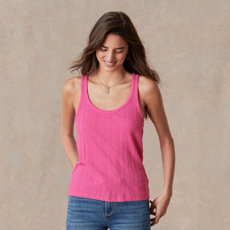 A wonderfully lightweight layering piece. this soft. dobby striped slub tank has a deep scoop neckline. Sure to become a wardrobe essential. Cotton/modal/spandex. Machine wash. Imported. Sizes XS (4). S (6). M (8–10). L (12). XL (14). XXL (16). Approx. 24.25l.