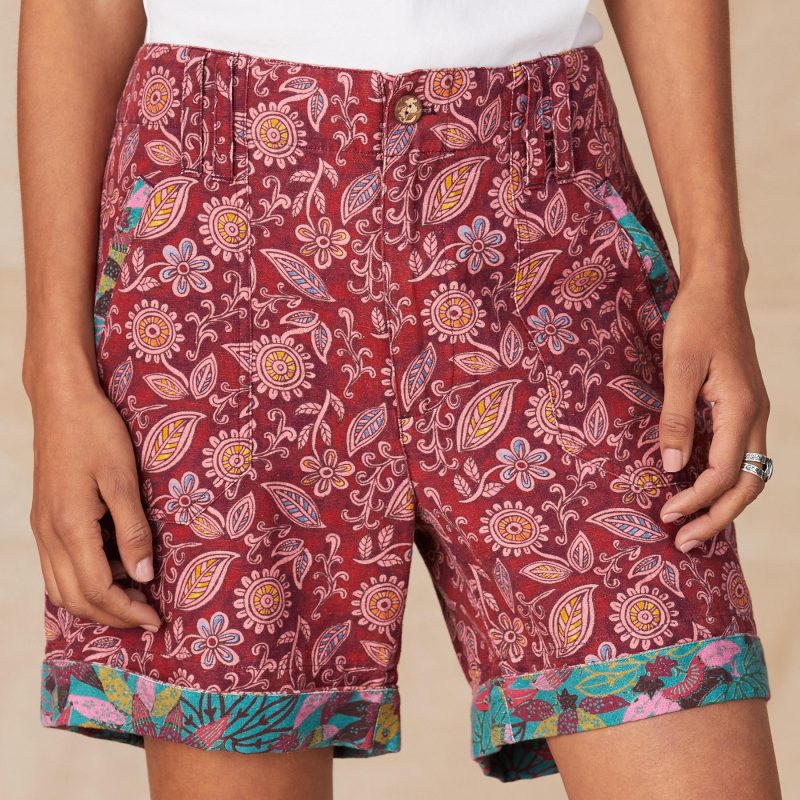 An update to a Sundance favorite. these mixed print shorts are inspired by Japanese gardens and woodcut designs in complementary patterns with florals blooming in vibrant colors. Engraved coconut button closure and zip fly. Four patch pockets. Linen/cotton. Machine wash. Imported. Exclusive. Sizes 0-14. 5 inseam.
