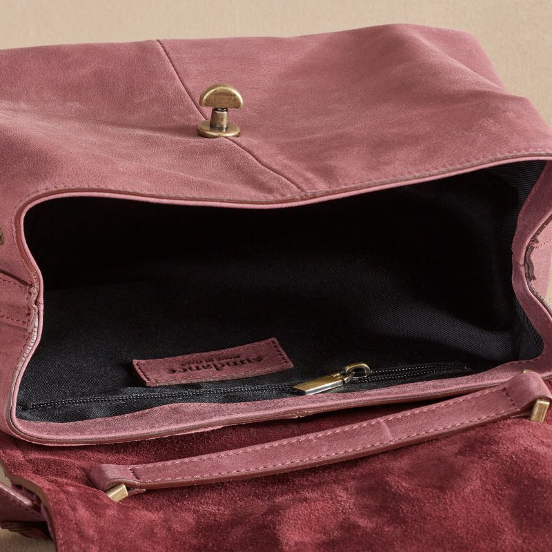 Handcrafted with supple leather. this bag features suede braided trim and tassels on either side of the flap. one zipper pocket. two slot pockets and a turn lock closure. Leather/suede. Italy. Exclusive. Approx. 15.25w x 6.25d x 11h.
