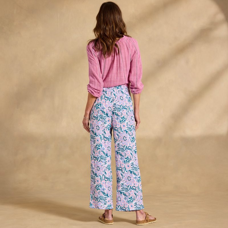 The easiest. breeziest warm weather pants. with wide-leg silhouette. smocked elastic waistline. decorative pearl buttons and festive seasonal prints. Pull them on and go anywhere in style. Cotton gauze. Machine wash. Imported. Exclusive. Sizes XXS (00). XS (0–2). S (4–6). M (8–10). L (12–14). XL (16–18). 27 inseam